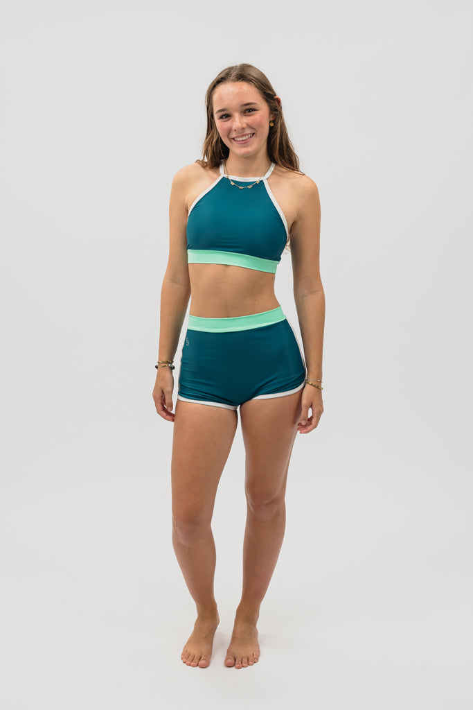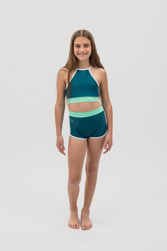 These were the perfect swimwear for my daughter who wanted something cool, simple and easy to wear. The rashie kept her sunsafe and the high waisted bottoms stayed comfy despute lots of games at the pool and the beach. We took them away on holiday and they dried quickly and looked fantastic. So happy with our purchase!