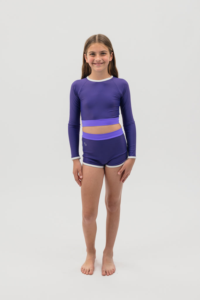 A fresh blend of style and functionality, our Cropped Rash Shirt is designed to complement your Be Bonnie, while adding that extra bit of coverage to protect you from the sun all day long! Its sleek fit and bold stitching provide effortless versatility, whether you're riding waves, building sand castles, or relaxing in the sun.